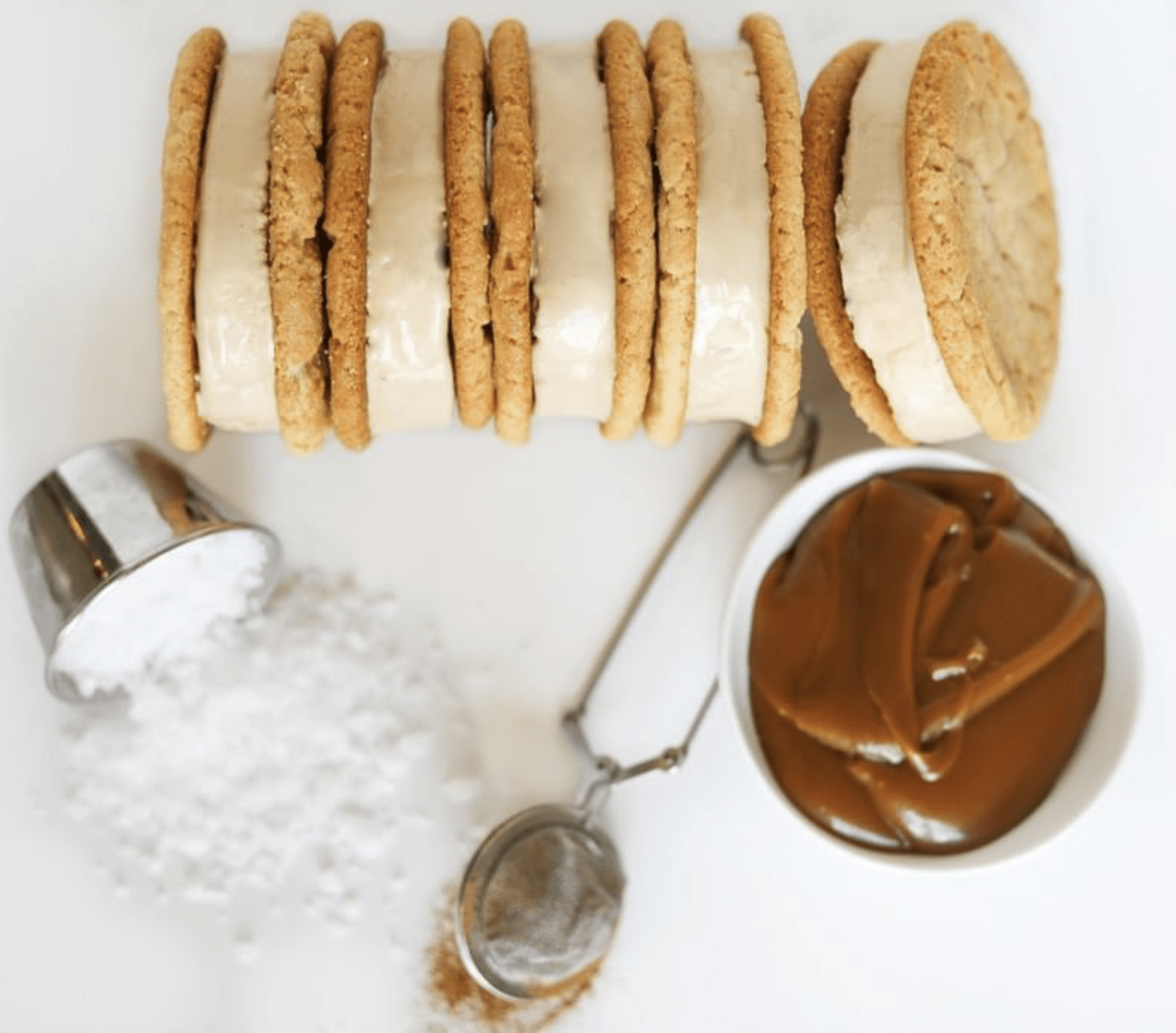 - Snickerdoodle Cookie Sandwich with Caramel Gelato
